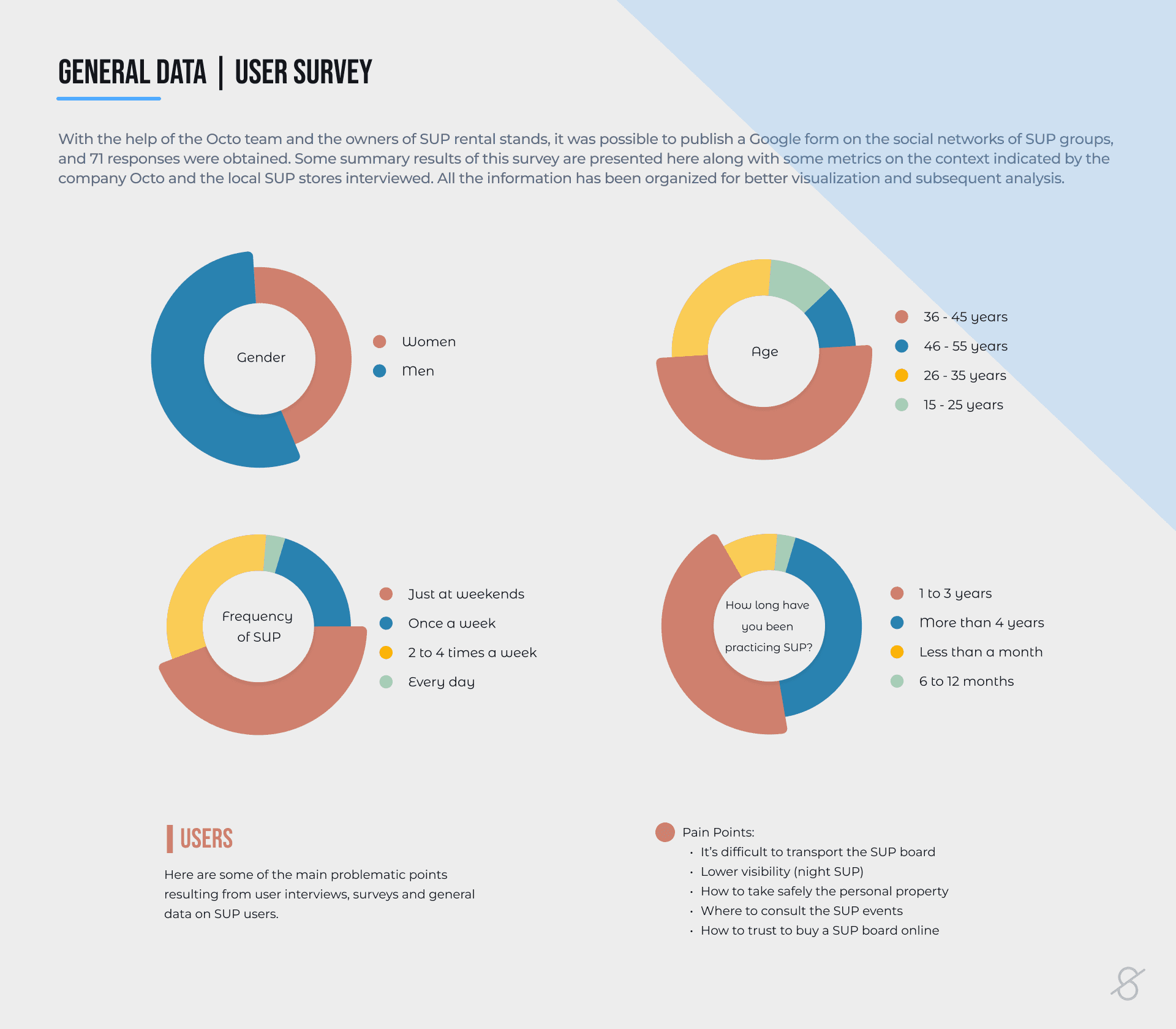 During my work as a designer at OCTO, one of my tasks was to develop sustainable accessories for SUP riders, as well as developing the company's website and app. However, it wasn't possible to complete the design of the website and app, only the research phase.