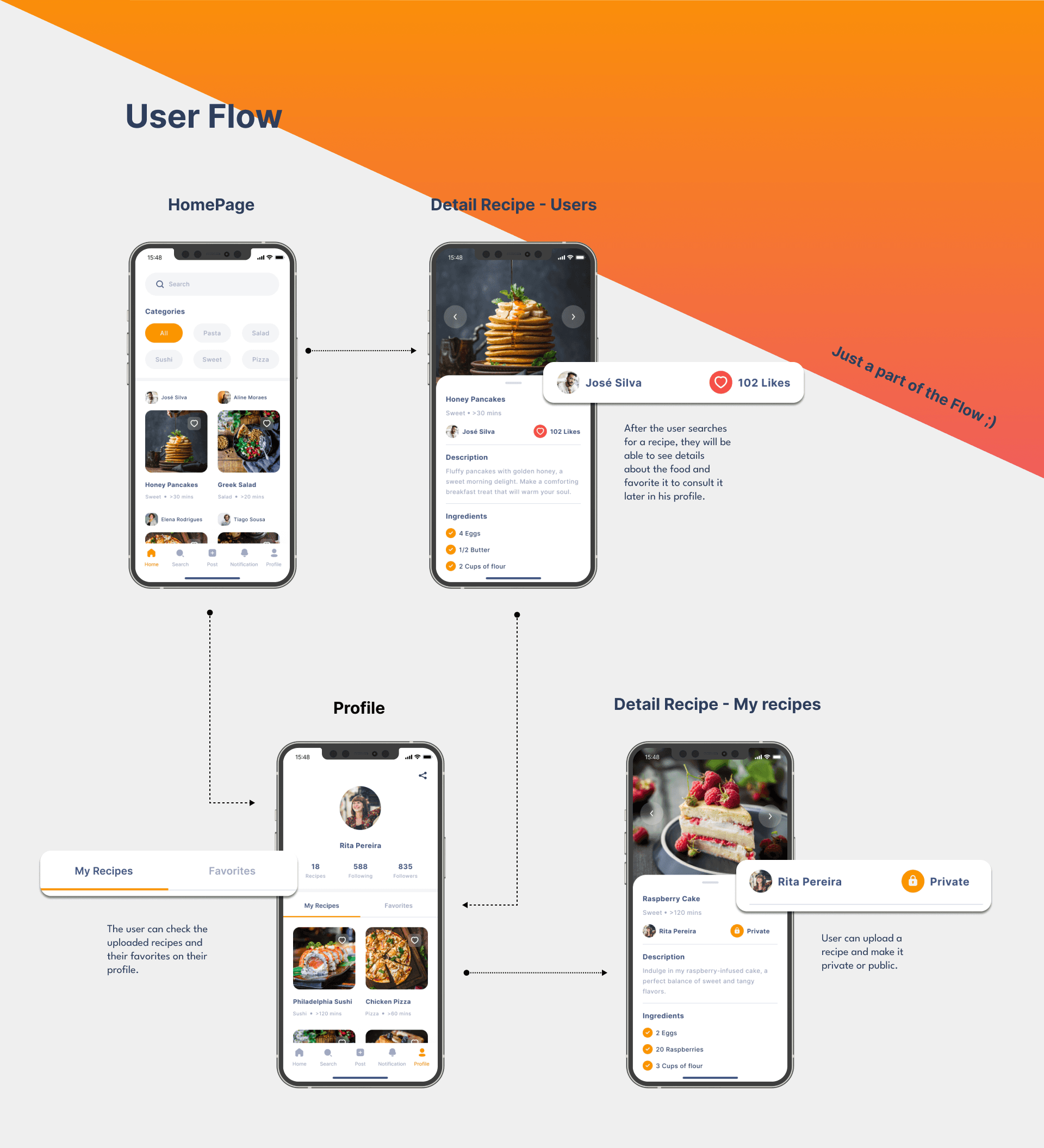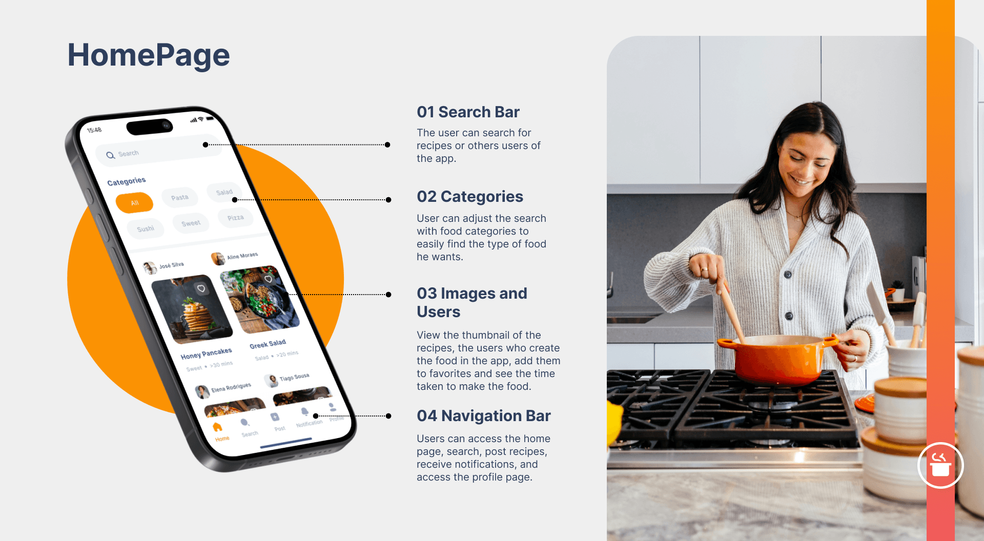 The app meets the objectives of the Dribbble Challenge, offering an appealing interface and essential features for recipe enthusiasts. In-depth research into the user experience and continuous improvement will ensure greater relevance and impact on the market.